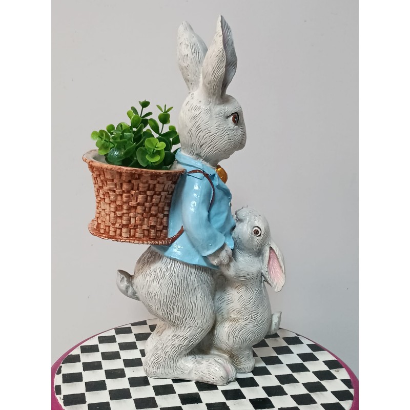 Zarif tasarımı ve detaylı işçiliği ile öne çıkan Sepetli Tavşan Baba & Yavru figürü, yaşam alanlarınıza sıcak ve nostaljik bir atmosfer katar. Sırtındaki hasır sepet detayı ve şık ceket tasarımı sayesinde hem klasik hem de country tarz dekorasyonlara uyum sağlar.